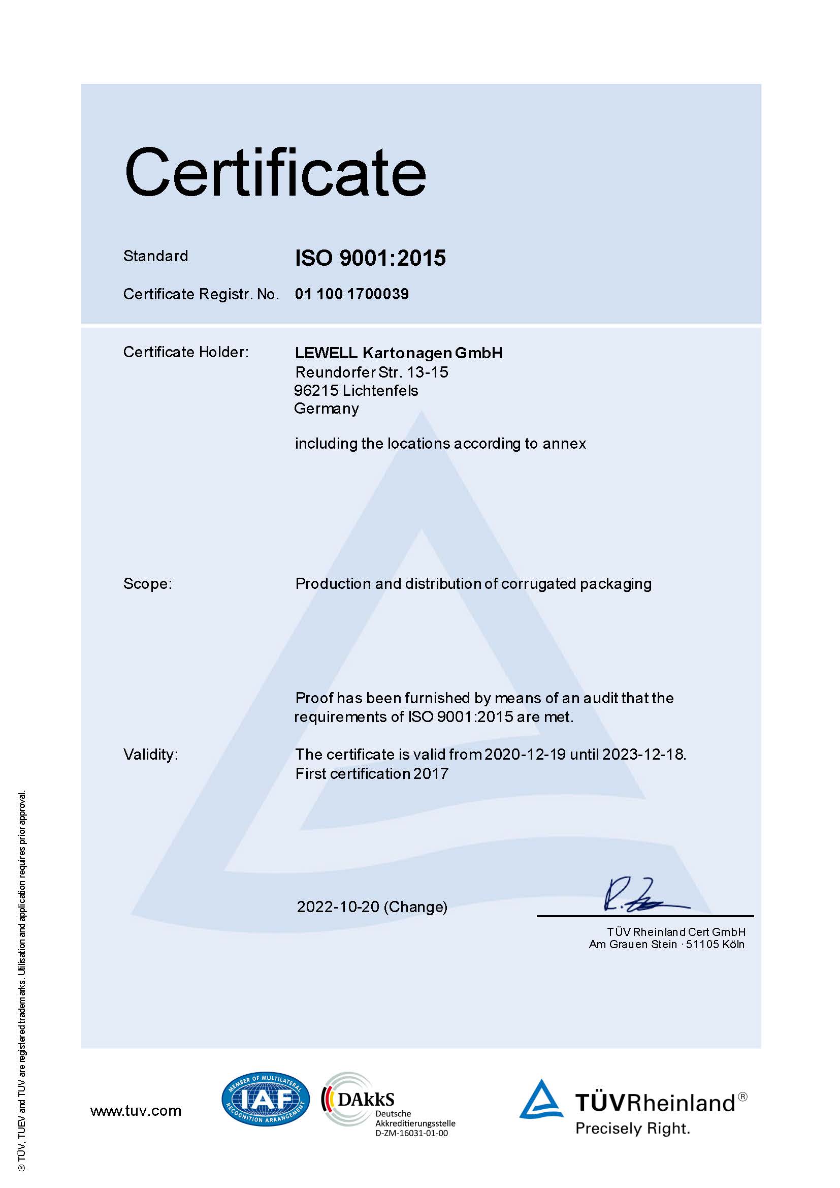 Processes that work properly are the foundation for consistent quality. Lewell’s quality system has been certified according to DIN EN ISO 9001:2015 since as far back as 1999. It guarantees both the quality of our products and of our internal processes in a verifiable way.